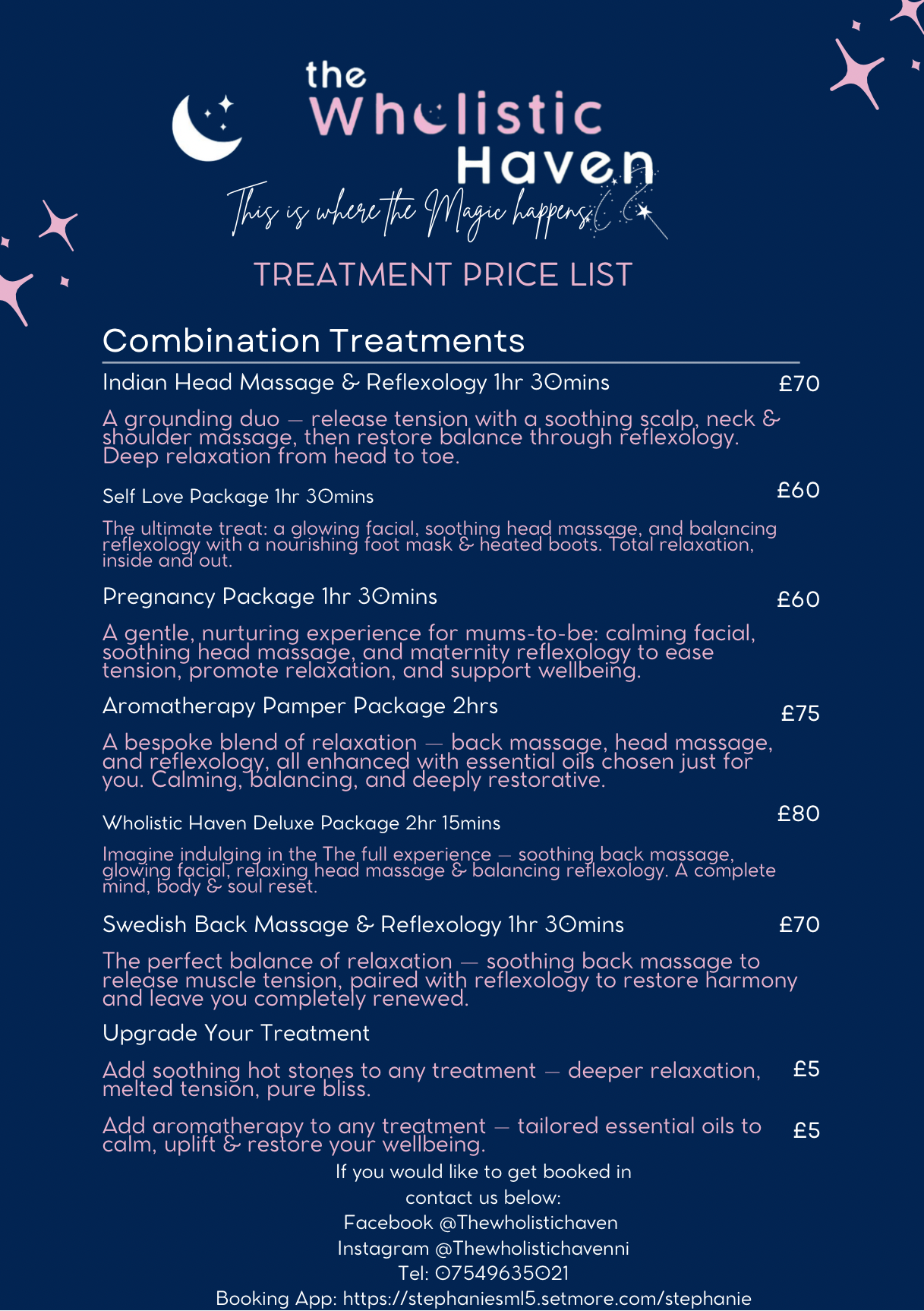 Click to get booked inFancy a combination treatment, check out the treatment list to find the ultimate self care package